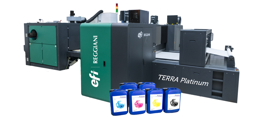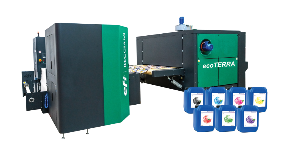 La impresora EFI™ Reggiani ecoTERRA Solution es una opción ecológica e innovadora para la impresión textil digital industrial. Combina eficiencia energética con alta calidad de impresión y rendimiento constante en diversos tipos de tejidos. Diseñada para reducir el impacto ambiental sin sacrificar colores vibrantes ni detalles precisos. Perfecta para empresas comprometidas con la sostenibilidad y la excelencia en producciones textiles.