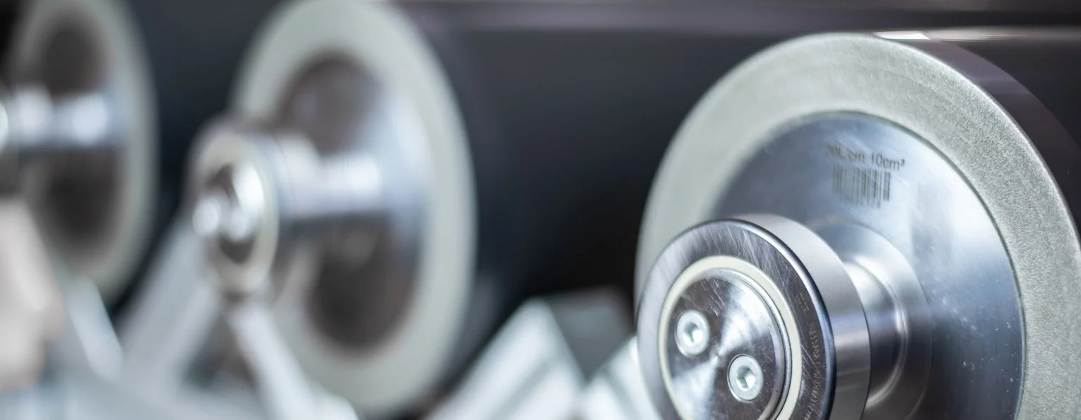 Los anilox son cilindros grabados con microceldas que controlan la cantidad exacta de tinta transferida a las planchas. Su volumen y lineatura determinan la intensidad y definición de la impresión..