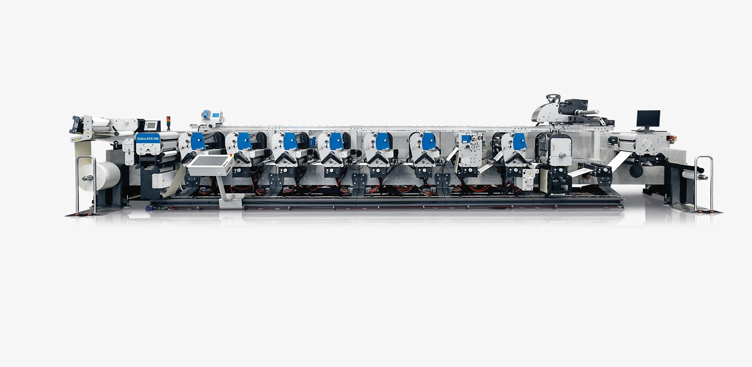 La Gallus ECS 340 es una prensa flexográfica modular para tirajes medianos y largos. Su chasis de granito mejora el registro al reducir vibraciones, y sus servomotores permiten cambios rápidos y mínima maculatura. Ofrece acabados en línea como cold foil y troquelado, con alta eficiencia y bajo desperdicio.