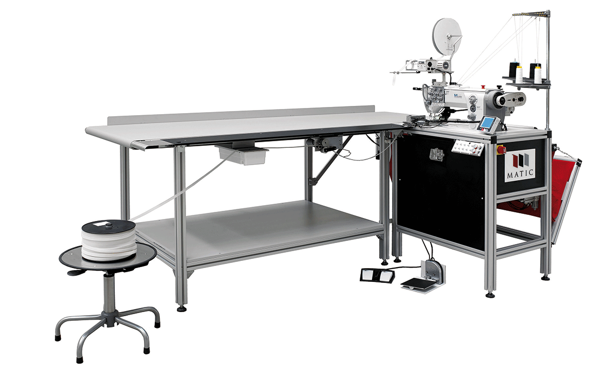 La MATIC Cronos 4.0 es una máquina semiautomática de costura diseñada para impresión digital, que destaca por su lector de códigos QR para auto-cargar programas, doble aguja con tensión neumática electrónica y cinta transportadora sincronizada. Su interfaz táctil y conectividad remota optimizan la precisión, trazabilidad y eficiencia operativa.