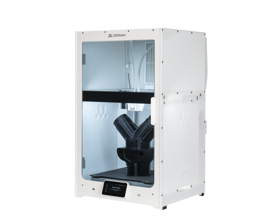 La UltiMaker S8 es una impresora 3D de alto rendimiento industrial con velocidad de hasta 500 mm/s y aceleración de 50 000 mm/s², logrando precisión de ±0,15 mm. Incorpora núcleos duales High-Flow para mayor caudal, imprime más de 300 materiales y ofrece gestión remota, cama flexible y filtro EPA para entornos exigentes.